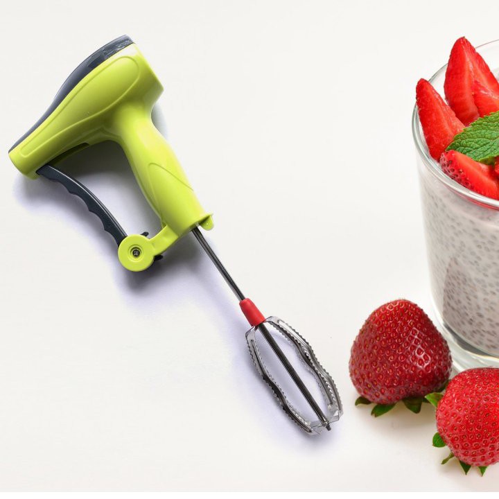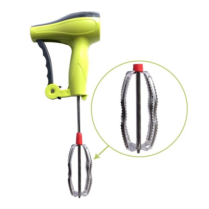 knob and contoured handle non-electrical, handy and easy to operate. Sturdy stainless steel beaters can be removed easily for cleaning, beaters are elevated and continue to work while the device rests on the bottom of the bowl.