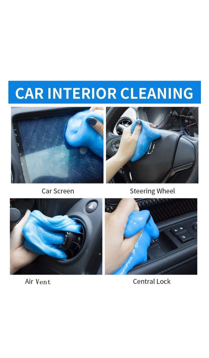 Car interior Cleaning Gel Made of biodegradable gel, not sticky to hand, smells sweet with lemon fragrance, totally no stimulation to skin. Please Do not Use Water/Detergent for Cleaning Gel. Press it on and the dust is gone.